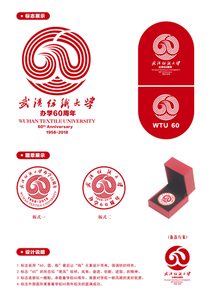 2018年,武漢紡織大學(xué)將迎來60周年華誕。本著隆重?zé)崃?,?wù)實簡樸,廣泛參與的原則,使校慶各項活動能有鮮明統(tǒng)一的視覺形象,武漢紡織大學(xué)面向校內(nèi)外公開征集60周年校慶標(biāo)識和宣傳語。經(jīng)2017年4月25日至5月22日近一個月的征集活動,得到全國各地校友和師生的廣泛參與,其間共征集Logo作品近150件,宣傳語近400條。在此,對參與本次征集活動的朋友表示誠摯的感謝!